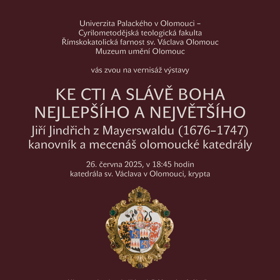 Cyrilometodějská teologická fakulta UP, Muzeum umění Olomouc a Římskokatolická farnost sv. Václava Olomouc zvou na vernisáž výstavy, která se uskuteční ve čtvrtek 26. června v 18:45 hodin v kryptě katedrály sv. Václava. Patří jednomu nejštědřejších dobrodinců olomoucké katedrály Jiřímu Jindřichovi rytíři z Mayerswaldu (1676–1747). Na výstavu, která potrvá do 14. září, je vstup zdarma. Záštitu jí udělil J. E. Mons. Josef Nuzík, arcibiskup olomoucký a metropolita moravský.
