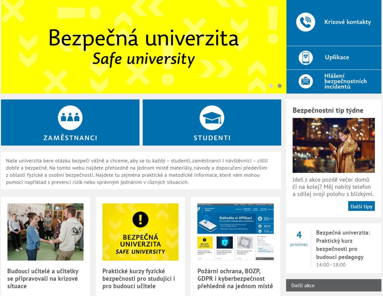 Bezpečná univerzita: lokální aplikace, krizové letáky, praktické kurzy i nová webovka